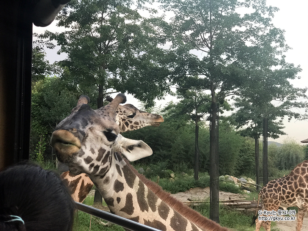 어디에 앉아야 기린에게 먹이 주는 모습을