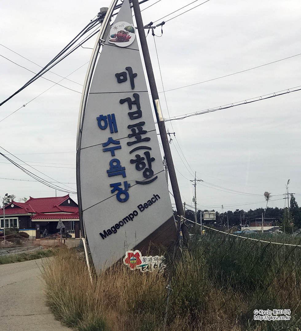 마을 입구에 거대한 안내판을 보니, 마검포(항) 해수욕장 입구였다