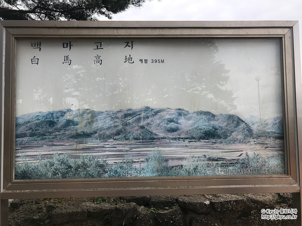 백마고지 전적지는 치열한 전투로 인해 민둥산이 되었고, 항공 촬영을 해 보니 백마가 누워있는 것 같다 하여
