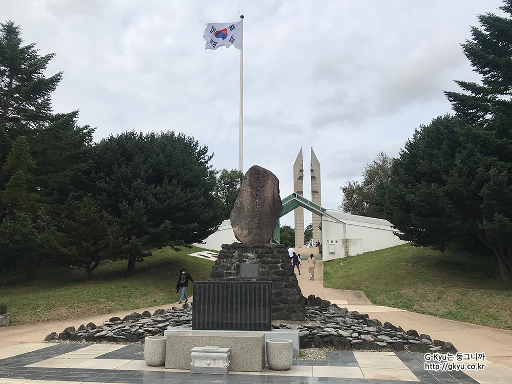 위령비와 분향소를 지나 뒤로 보이는 기념비를 향해 걸어간다