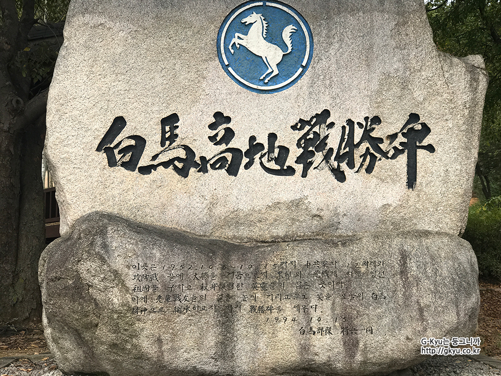 백마부대의 부대마크와 백마고지 전적지에 대한 설명이 적혀있는 기념비가 있었다