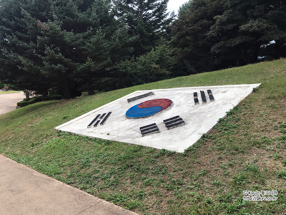 아쉬운 마음에 기념관 좌측과 우측을 보니, 태극기와 우리나라 지도가 있었다
