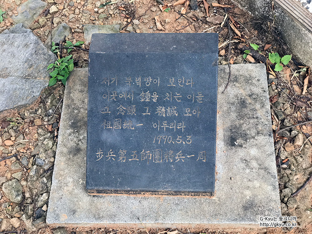 저기 북녘땅이 보인다 이곳에서 종을 치는 이들 그 영령 그 정성 모아 조국 통일 이루리라