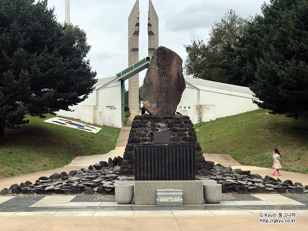 위령비와 분향소를 지나 뒤로 보이는 기념비를 향해 걸어간다