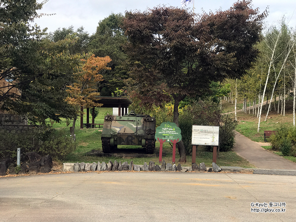 기념탑으로 올라가기 전 주차장 주변을 둘러보니, 장갑차도 전시되어 있었다