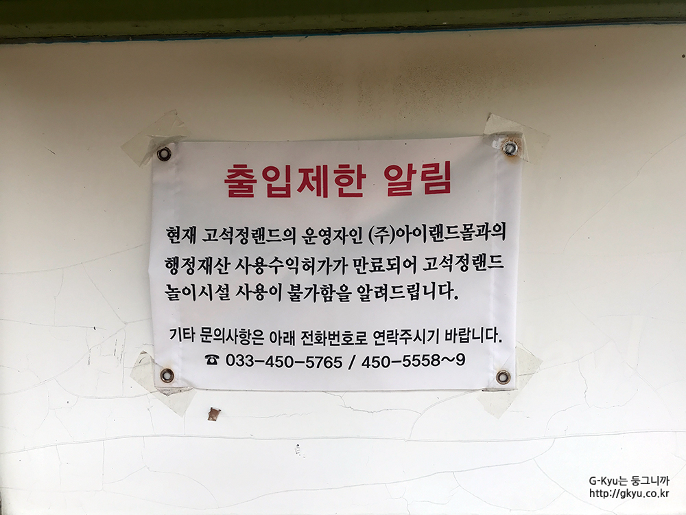 출입 제한을 알리는 경고 문구와 고석정 랜드가 이전에는 유원지의 역할을 했을 것이란 생각이 든다