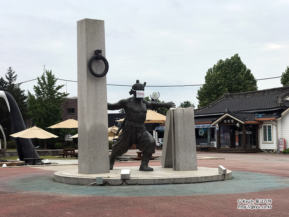 고석정은 임꺽정이 숨어 활동했던 지역이어서 그런지 홍보대사처럼 큰 동상을 만들어 놓고, 코로나 확산 방지를 위해