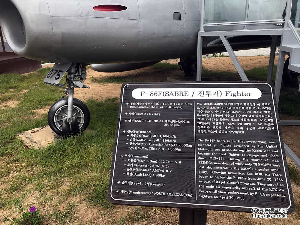 전투기의 사양과 역사가 적혀있었다 미국에서 만들었으며, 1955년 6월 20일부터 도입되어 66년 4월 30일까지