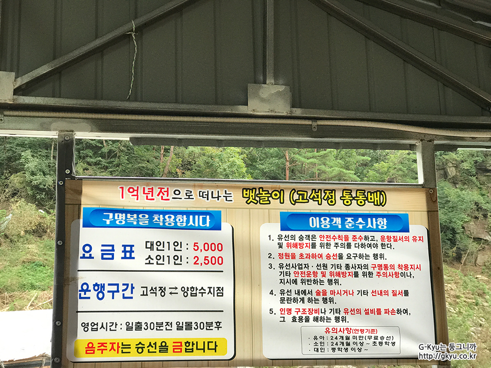 고석정 입구의 현수막에 적힌 것처럼 지난 폭우로 인해 곳곳이 훼손되었고 복구 중이었으나 관광하러 가는 데엔