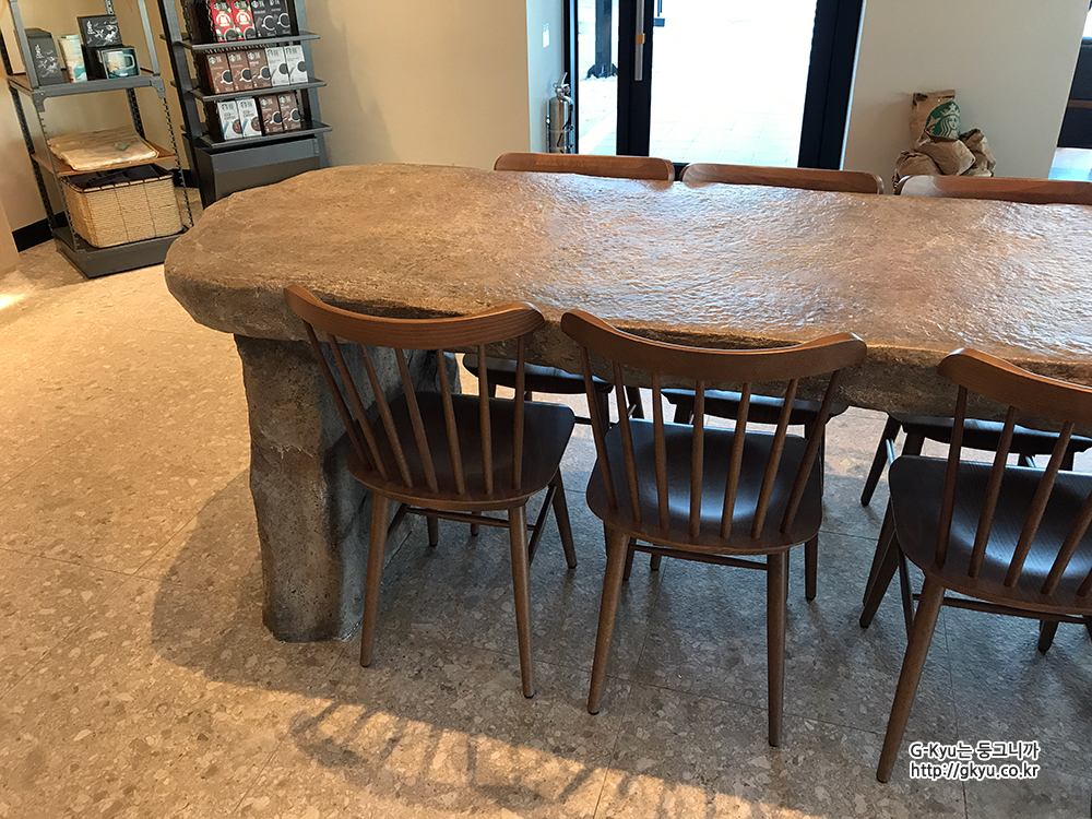 테이블 모양과도 비슷한 고인돌의 디자인을 적용한 강화도 스타벅스