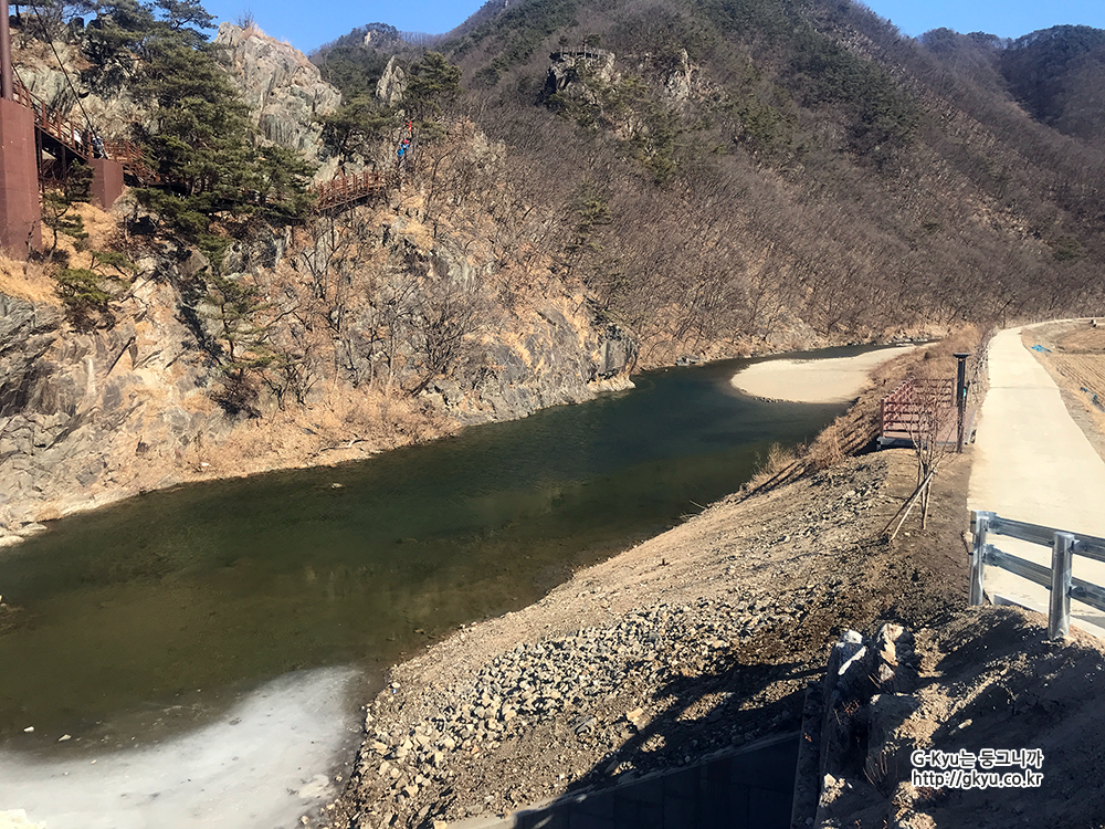 지금은 인공 폭포가 생기고, 출렁다리로 관광 명소가 되어가니,