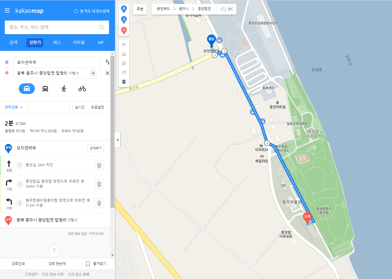 충주의 유명 장소 중 하나인 충주 중앙탑 공원 근처에 위치한 약국