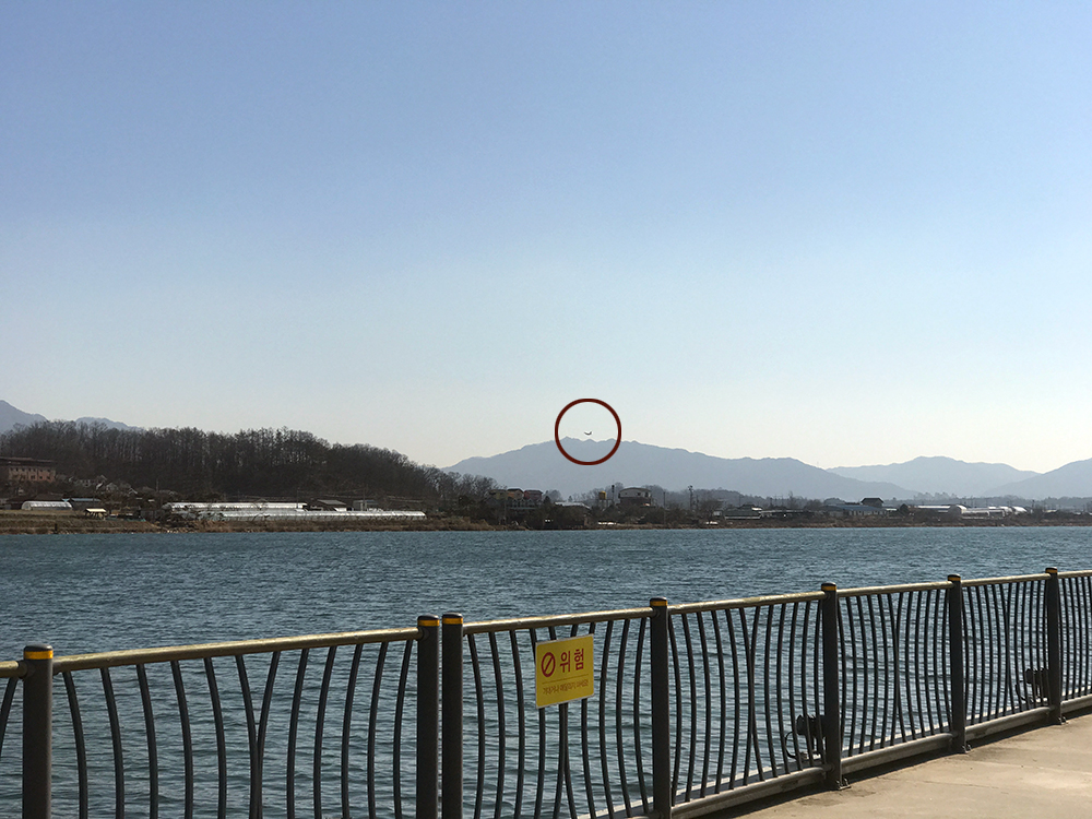 아까 본 다리를 건다 보니, 전투기 한 대가 보였다