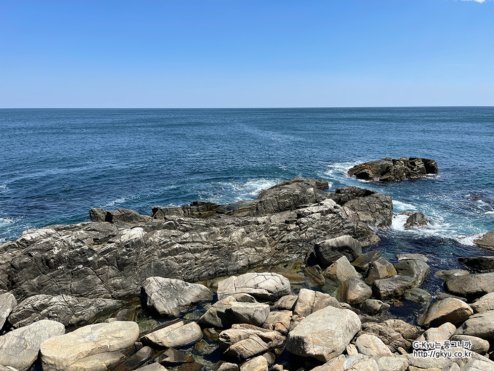 걸어가며, 끝없이 펼쳐진 동해 바다와