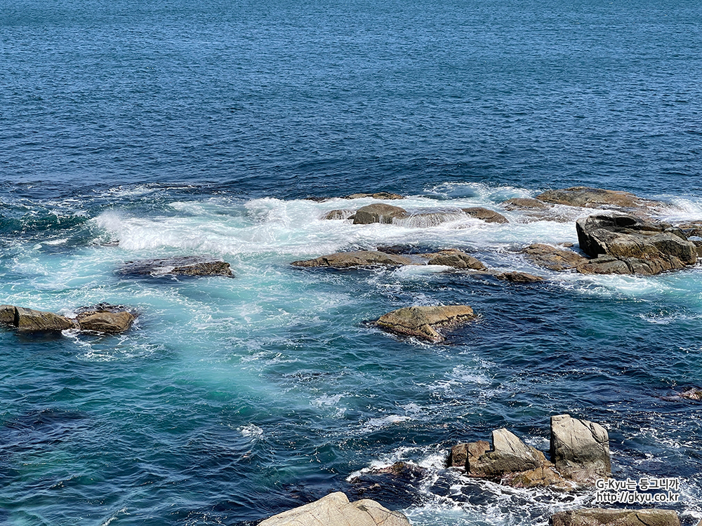 푸른 동해바다와 기암괴석이 즐비하게 늘어선