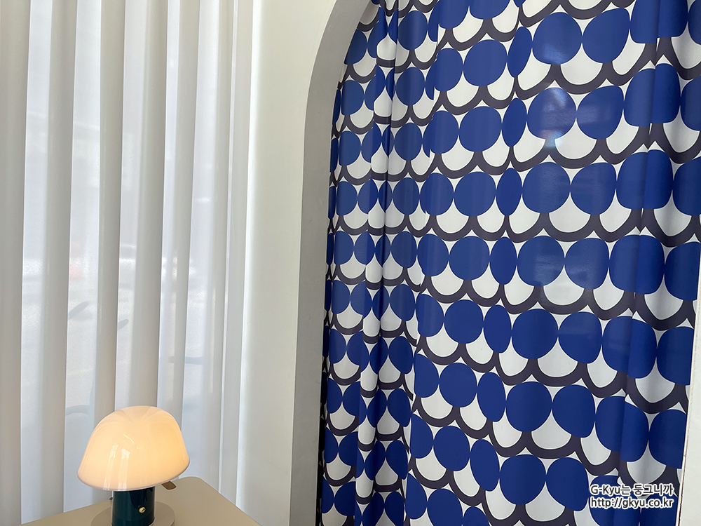 흰색과 파란색으로 어우러진 인테리어가