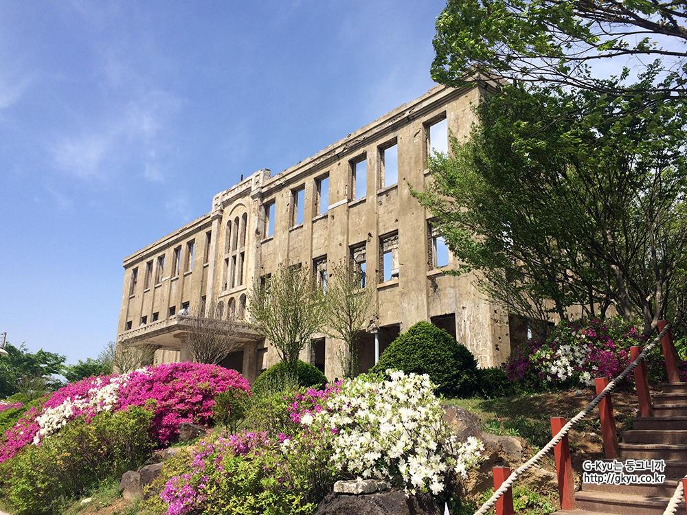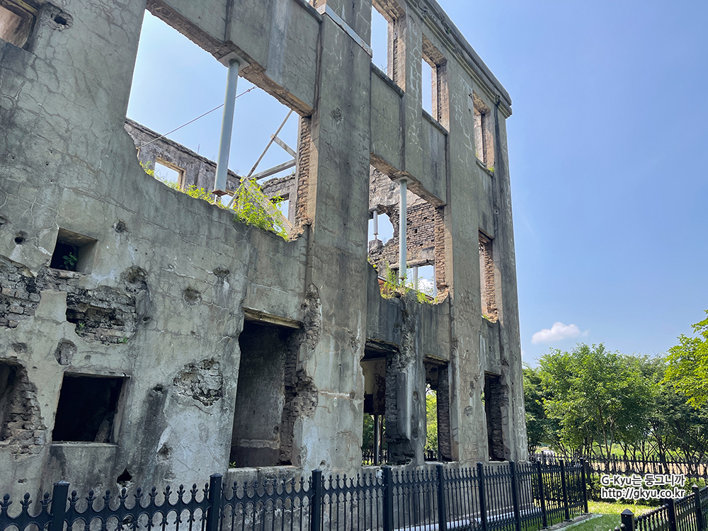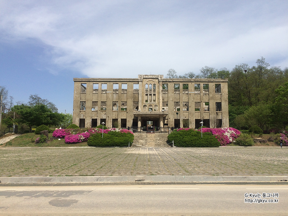 여기저기 포탄 자국과 앙상한 뼈대만 남아있는 노동당사는 6.25 전쟁의 아픔과