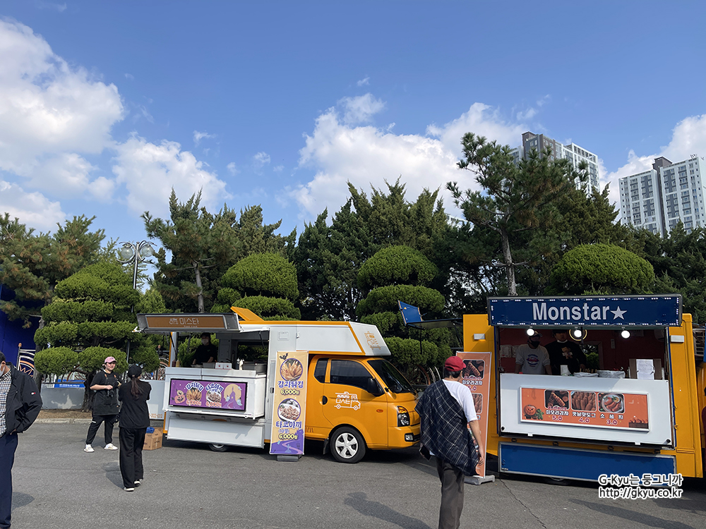 3대의 트럭이 있었는데, 그중 한대는 카페 트럭이었다