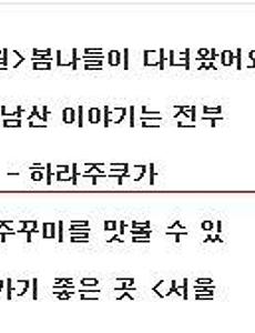 반응형 G-Kyu988 까칠하게 드라마를 보자! 드라마를 왜 볼까? 일일 드라마를 제외하면 매주 이틀씩 하루 한시간 총 두시간을 투자하는 드라마 드라마를 보는 것은 군대에서 절정을 이루는데 , 한 드라마를 잡으면(꾸준히 시청하면) 시간이 빨리 간다는 이야기가 있어, 드라마에 열광하는 군인을 내무실에서 어렵지 않게 만날 수 있었다. 이처럼 드라마는 남여노소 할 것 없이 빠져들 수 밖에 없는 매력을 발산하고 있다. 규칙적으로 운동은 하지 않아도, 규칙적인 드라마 생활을 유지하고 있는 시청자 국제화 시대에 맞게 미드(미국 드라마), 일드(일본 드라마)까지 섭렵하고 나면 나도 모르게 미국 / 일본식 말 버릇 , 리액션등등 드라마에 나오는 인물의 모습을 닮아가고 있음을 보게 된다. 고깃집에서 1인분에 200g이라고 판매하면 , 진짜 200g 일까 의심을 하면서.. 2010. 5. 8. 미용실에서 느끼는 딜레마 우리는 왜 미용실을 가는가?! 중학교 시절... 요즘 중학생은 아이돌 머리를 할 수 있을 정도로 길이에 제한이 없지만, 십수년전만해도 중학생이 할 수 있는 머리란....유승준(스티브 유)머리 정도... 왜 스포츠 머리인지 모르겠지만 , 일명 스포츠 머리 밖에 할 수 없었다. 그 머리가 스포츠 선수들의 대표적인 머리여서 그런 것인가?! 전에는 중딩이 그 머리를 졸업할 때까지 했다면 요즘 그 머리를 몇년이상 계속 하는 직업은 군인 정도...? 입대하고 난생 처음으로 삭발하고 , 다시는 삭발하지 말아야 겠다는 다짐을 하는 동기들과 내 자신을 보며, 삭발은 아무나 어울리는게 아니었구나~ 하면서 굳은 다짐을 굳혔던 춥고 배고팠던 군인의 시절....설문 조사에서 군대란 어떤 곳인가? 라는 질문에 자유를 억업하는.. 2010. 5. 7. 파헤쳐 보자! 블로그와 영어의 공통점 20 가지 영어와 블로그에 공통점이 있는가?! 춘향이와 이몽룡의 사이 만큼이나 취업과 영어공부의 관계는 밀접 하지만 막상 취업을 하고 나면, 직장에서 왠만한 부서에서 영어 사용 빈도는 견우와 직녀가 만나는 빈도 수 만큼 영어를 사용하는 것이 대부분의 경우이니... 외국인을 만나면 꿀 먹은 벙어리 마냥 평소 라디오이 끊임없이 말을 하는 입을 열지 아니하고 그 무거운 입 열어 하는 말이라고는 "I Can't Speak english" 그 말도 영어가 아니냐며 의아해하는 외국인을 보며... 영어 못 한다고 하는데 왜이렇게 쳐다보는건지...라는 생각에 지난 영어 공부 시간을 돌이켜 본다. 생활에서 겪는 영어의 관계 , 에피소드가 있다는 것은 그 만큼 가깝게 지냈다는 뜻인데 컴퓨터를 한다는 사람들이 하고 있는 것...아니 .. 2010. 5. 6. 2주면 된다! 일본 4박 5일 - 시오도메 26. 니혼TV타워가 있는 시오도메역 하마리큐 정원에서 오전의 끝을 달리고 걸어서 10~15분정 면 갈 수 있는 니혼TV타워로 이동합니다. 지도상 그렇게 멀지 않기 때문에 충분히 걸어 갈 수있고 걸어 가는 동안 이제 점심시간이 가까워졌는지 슬슬 식사하러 나온 일본 회사원을 볼 수 있었습니다. 하마리큐 정원도 있고, 고층 빌딩도 보이고 , 방송국도 보이니 마치 우리나라의 여의도 같은 느낌이 듭니다. 이동 경로를 보시면 아시겠지요? 하마리큐 정원 출구로 나와 이렇게 이동하였습니다. 니혼TV타워에 도착하여 에스컬레이터를 타고 내려가는 도중 사진을 찍어 봅니다. 겨울 임에도 추운 기운이 느껴지지 않고, 그보다 더 좋았던 것은 일본에 도착한 이후 처음으로 맑은 하늘을 만끽한 것 이지요! 한국에선 호빵맨으로 알려져.. 2010. 5. 5. 프레스 블로그 주간 베스트 후보 프레스 블로그 주간 베스트 후보 - 일상 부분 이 포스팅을 읽어 보고 싶으시다면 [여기] 를 클릭 하세요~! 이 포스팅을 읽어 보고 싶으시다면 [여기] 를 클릭 하세요~! 발행만 하고 어떻게 되는지 신경을 안썼었는데 , 프레스 블로그에 2개나 후보에 올랐습니다... 혹시 지나가시는 길에 들르신다면 , 추천 해 주시면 감사하겠습니다~! ^^; 프레스 블로그 링크 입니다 http://www.pressblog.co.kr/thereview/channel/104100 2010. 5. 4. 레뷰에 주간 베스트 후보에 뽑혔네요 일본 여행에 관한 포스트 일본 여행에 관한 포스트를 레뷰에도 발행하고있었는데요 오늘 살펴보니 , 주간 베스트 후보에 올라있네요~! 기한은 이제 거의 마무리 될 때 봤네요^^; 그 동안 이런 기회가 올지 모르고 무심했던 저를 반성(?)하게 만듭니다~! 혹시 마음이 있으시다면 http://www.revu.co.kr/BestReview 에서 추천 한방 부탁 드립니다~!^^; 일본 여행에 관한 관련 포스트 링크 입니다 http://kyutravel.tistory.com/13 프레스 블로그에서도 주간 베스트 후보 글이 선정되었네요 ^^; 프레스 블로그 주간 베스트 후보 글 링크 입니다 http://kyutravel.tistory.com/42 2010. 5. 4. 이전 1 ··· 156 157 158 159 160 161 162 ··· 165 다음 반응형