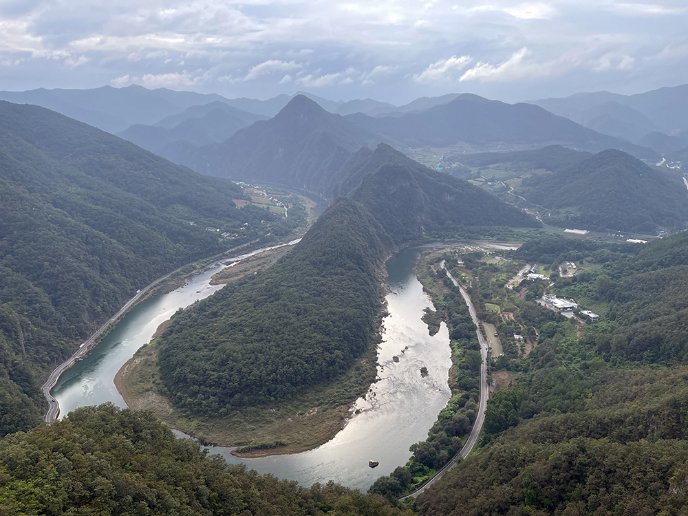 왜 이러한 모양의 지형이 만들어졌는지 알아보기 위해서는 한반도 모양을 둘러싸고 있는 강이 어떻게 흘러가는 지를 이해하는 것이 필요하다. 앞에 흐르는 동강은 우리나라에서 감입곡류(嵌入曲流)의 형태로 흐르는 대표적인 하천이다. 감입곡류란 하천이 흐르는 지역이 융기되거나 하천이 계속 아래를 깎으면서 흐를 때 자유로운 방향으로 구불구불한 형태를 보이면서 아래를 깊게 파서 만들어진 하천을 말한다.