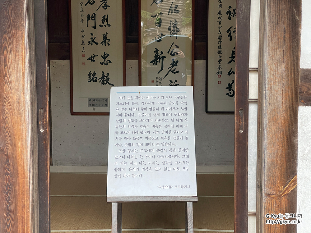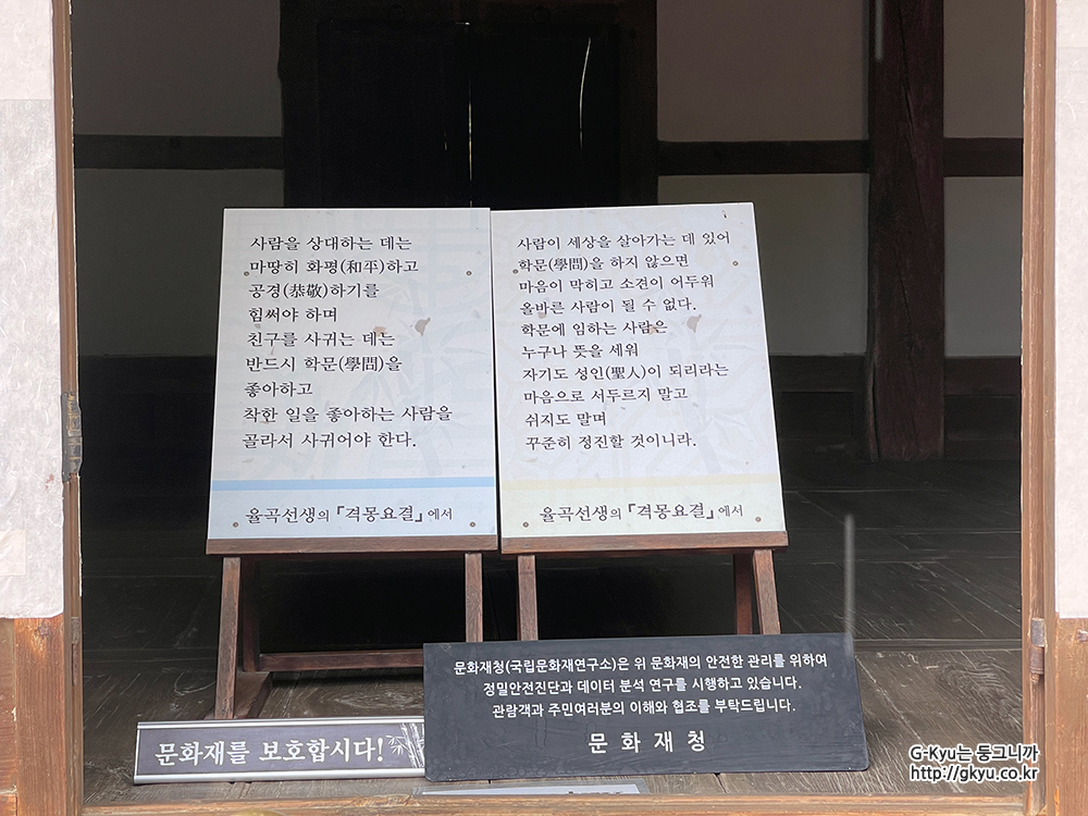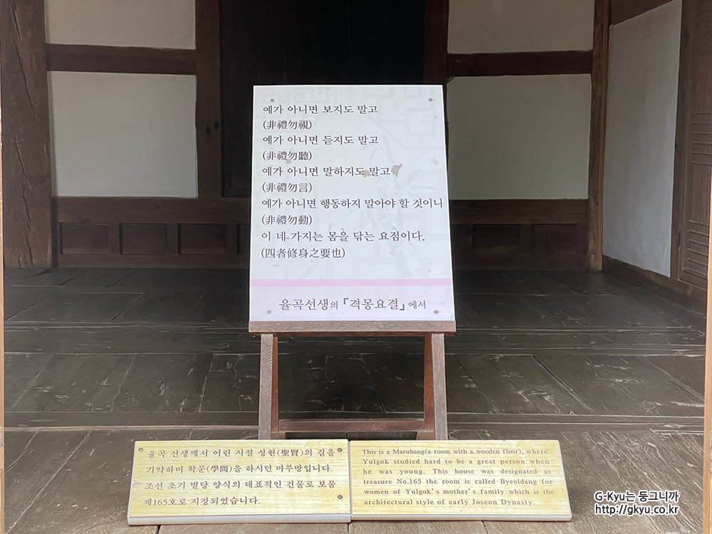 즉, 율곡 이이가 공부했던 마루 방에 쓰여있는 글
