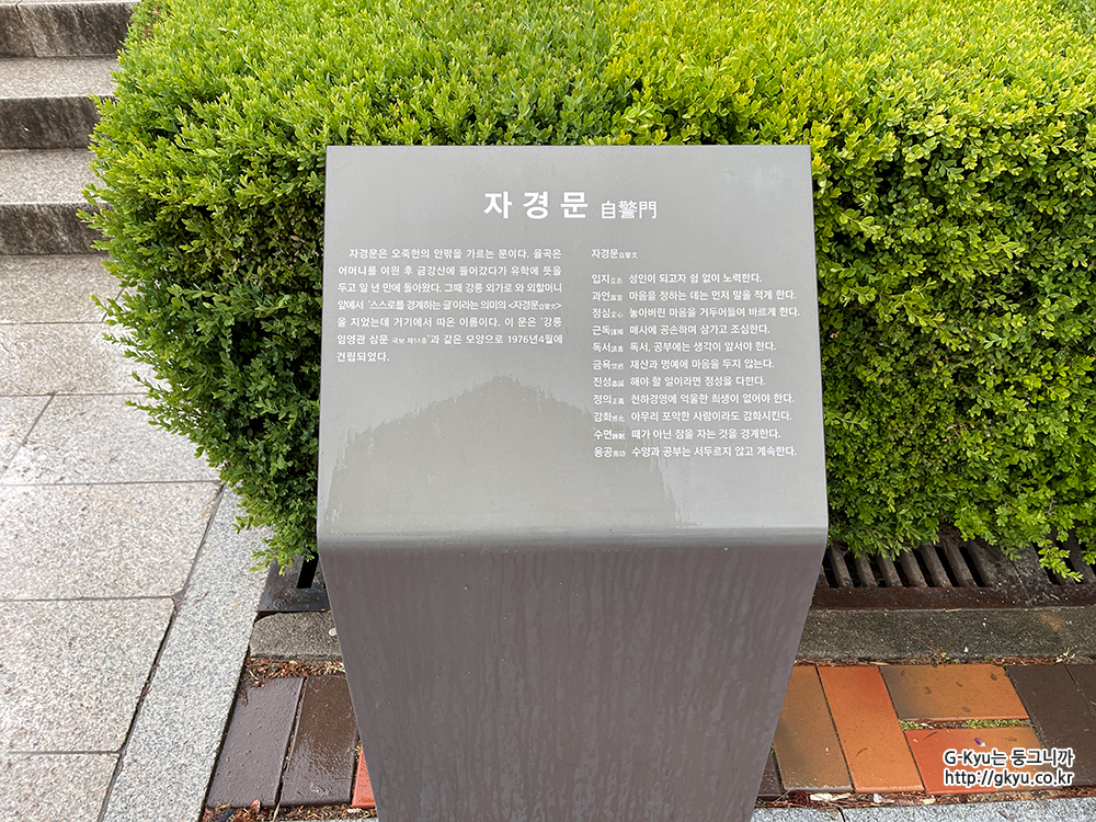 그때 강릉 외가로 와 외할머니 앞에서'스스로를 경계하는 글'이라는 의미의 <자경문>을 지었는데