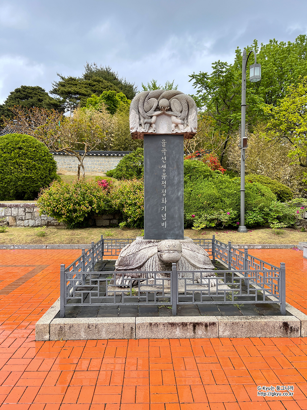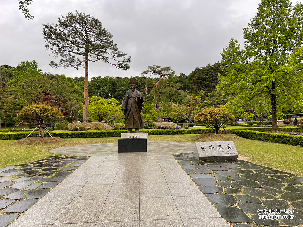 율곡 이이의 동상이 있고,