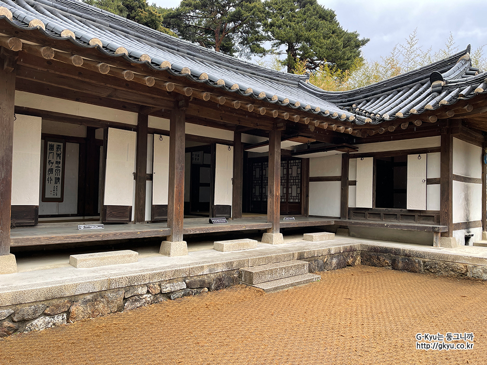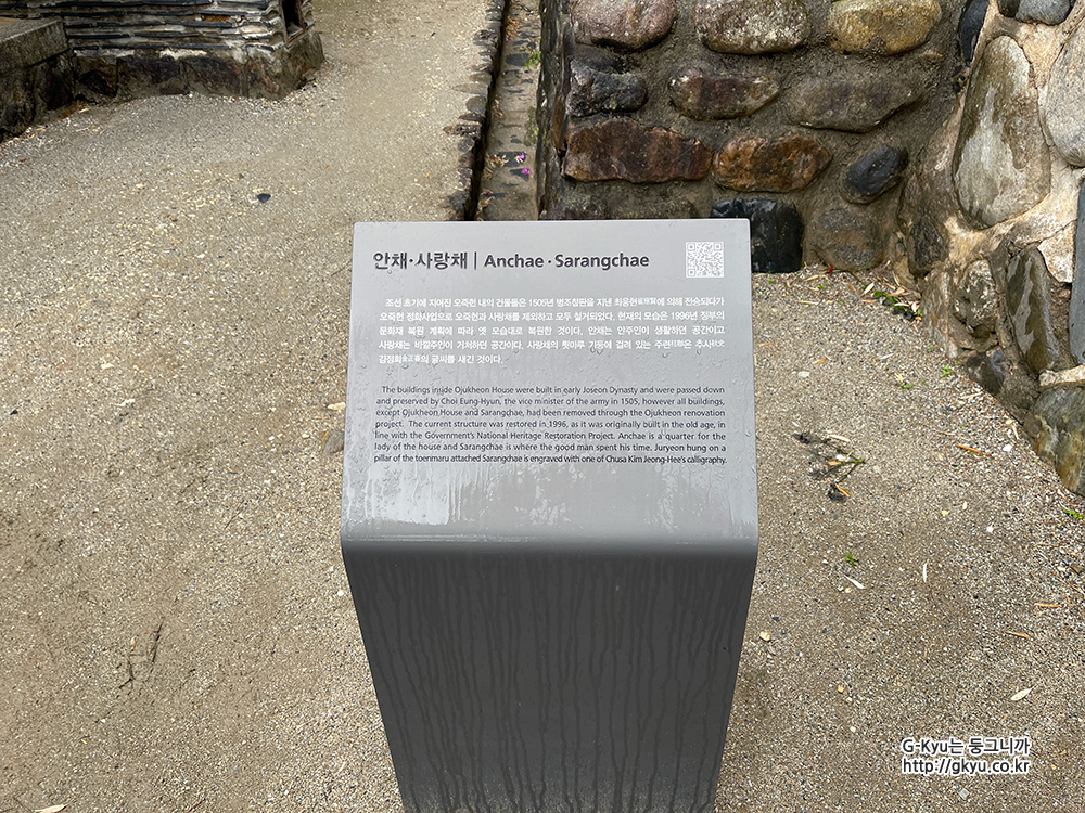 안채, 사랑채 안내판이 보인다