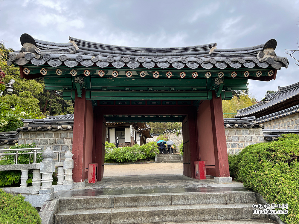 이 문은 '강릉 임영관 삼문 (국보 제51호)'과 같은 모양으로 1976년 4월에 건립되었다
