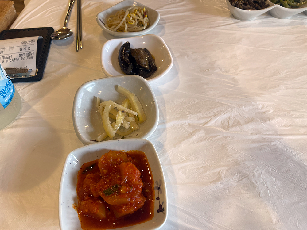 잠시 뒤 밑반찬이 하나둘씩 식탁을 채우기 시작한다.