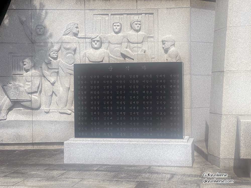 순직자 명단 139명이 좌우에 나뉘어 비석에 기록되어 있었으며,