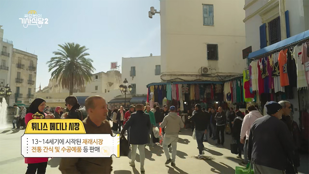 시장에서 튀니지 전통 의상을 구매하기 위해 탐색을 한다