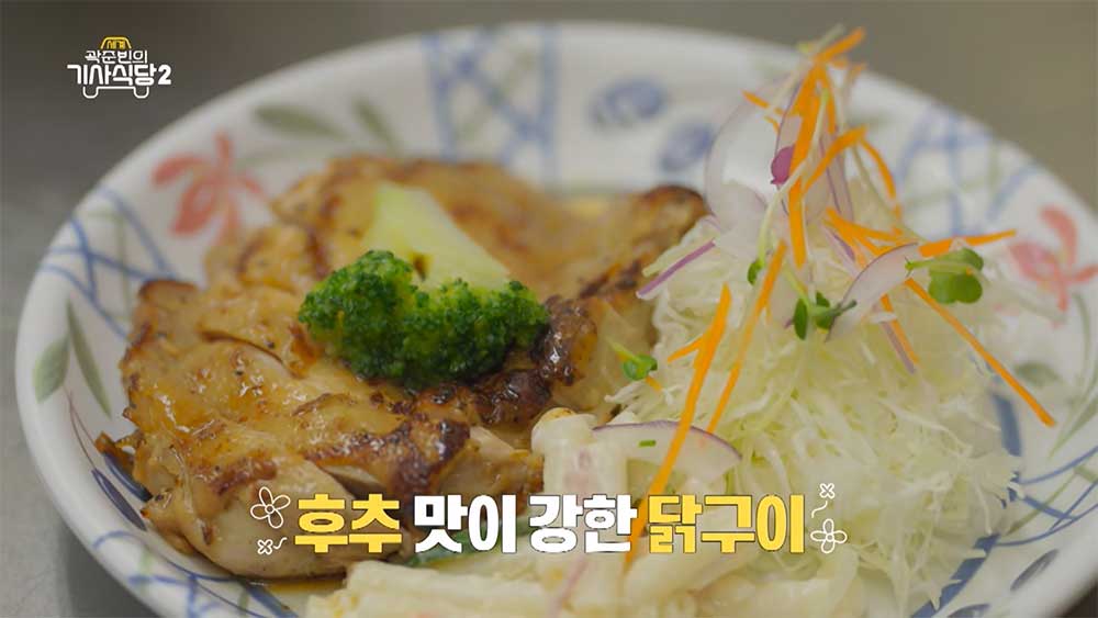 후추 맛이 강하고 닭고기를 스테이크처럼 조리한 것 같다.