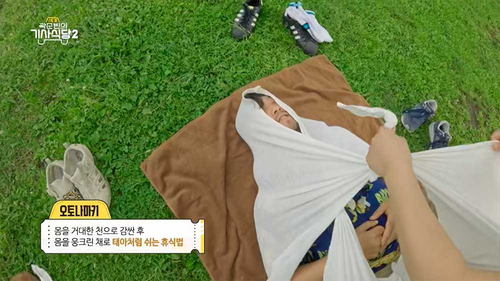 앞서 설명하긴 했지만 정확히 설명하면 몸을 거대한 천으로 감싼 후 몸을 웅크린 채로 태아처럼 쉬는 휴식법이다.