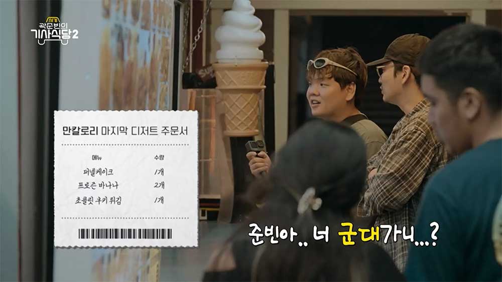 곽튜브(곽준빈)과 이동휘 그리고 택시기사인 데이비드가 함께 먹을 햄버거로 주문한다. 1인당 먹는 햄버거의 칼로리는 2,070kcal. 표준 체중에 곱하기 25 ~ 30을 하면 하루에 필요한 칼로리가 나온다. 70kg인 성인 남성 표준 체중이라고 가정하면 70 * 30 = 2,100kcal이 된다.