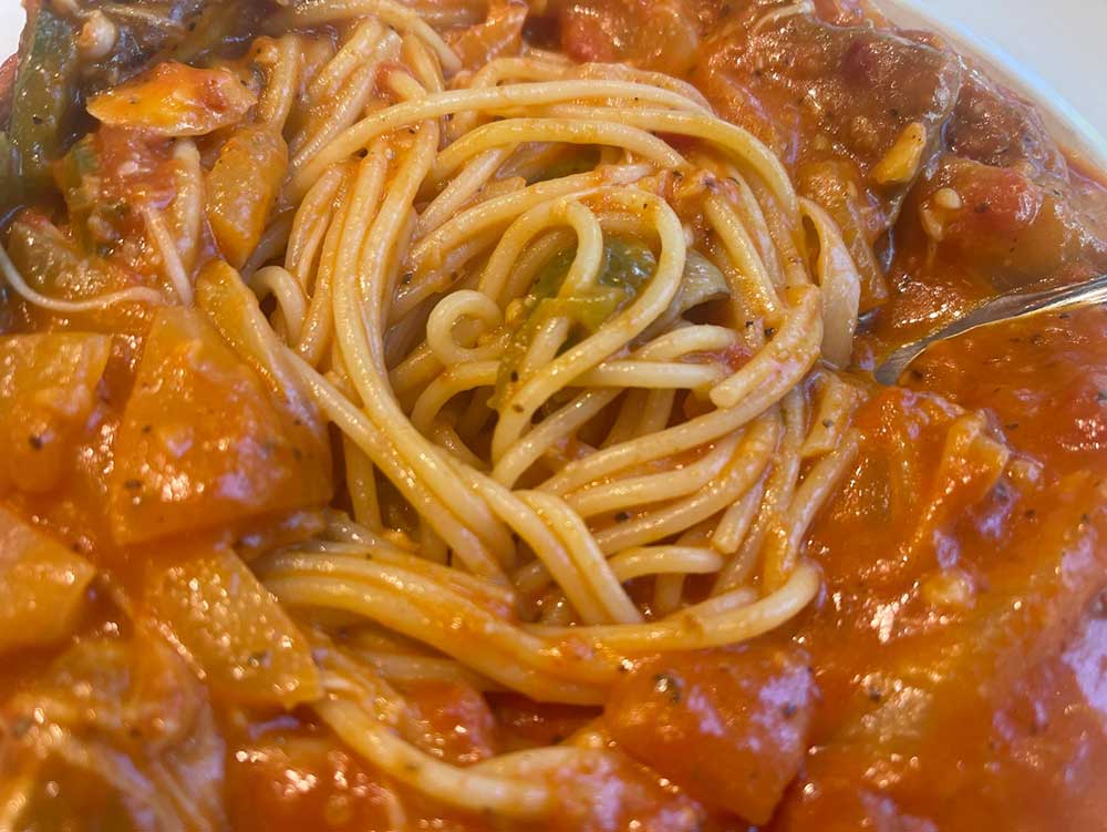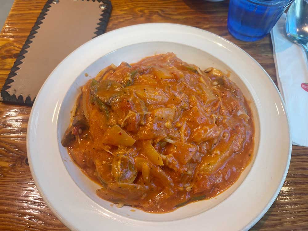이런저런 생각을 하던 중 주문했던 음식이 나왔다. 오래간만에 방문해서 인지 모르겠지만 토마토소스가 좀 되게 느껴졌다. 조금 과장하면 볶음면일 때의 소스처럼 보인다. 이전에는 조금 더 묽었던 느낌인데 솔직한 마음으론 오늘 소스 상태는 실망스러웠다. 너무 묽어도 문제지만 너무 걸쭉해도 문제다. 그 적당한 비율이 있었는데 오늘은 그렇지 못한 것 같다.