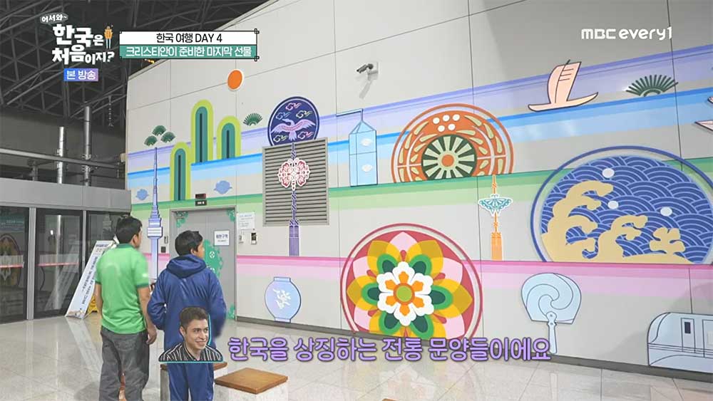 한국에서 4일 동안 있으면서 체험하고 벽을 보니, 한국의 전통 문양이 눈에 들어온다.