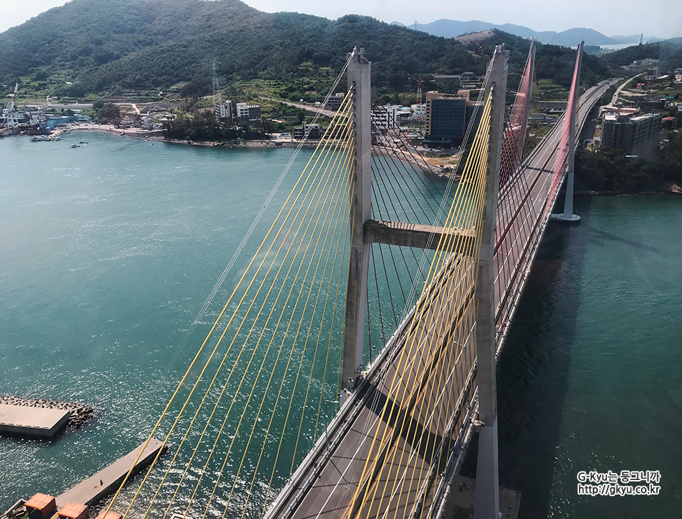 저 멀리 케이블카와 이순신 대교가 보인다