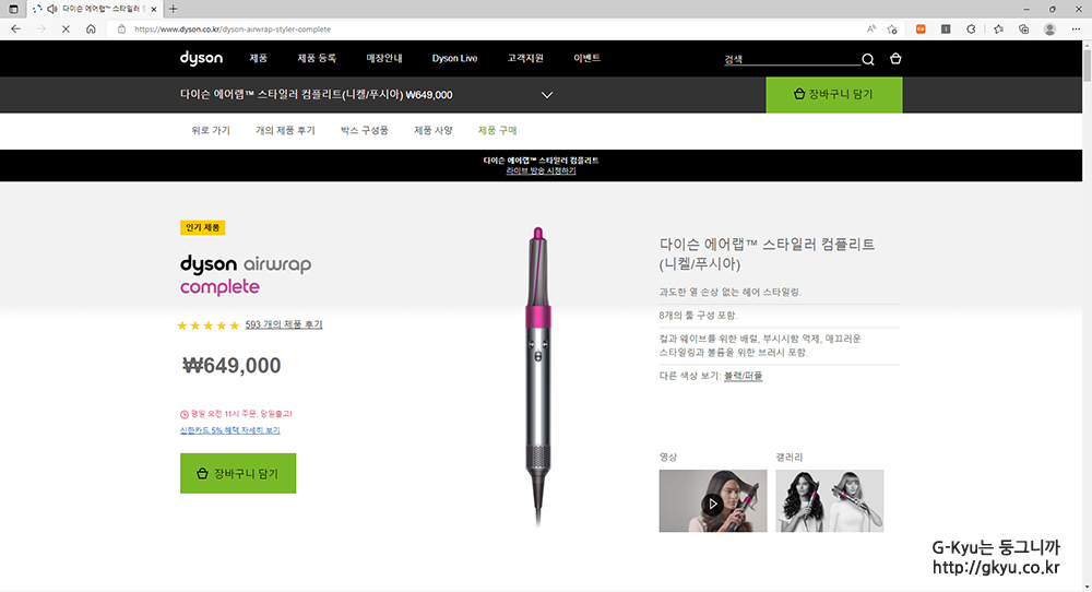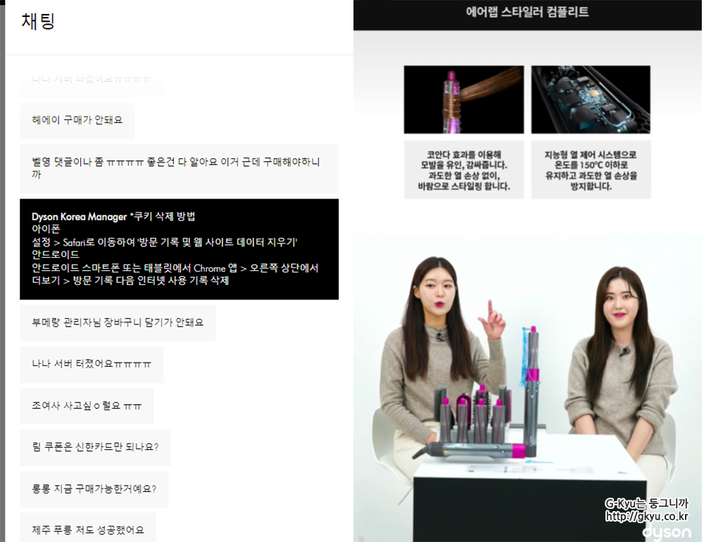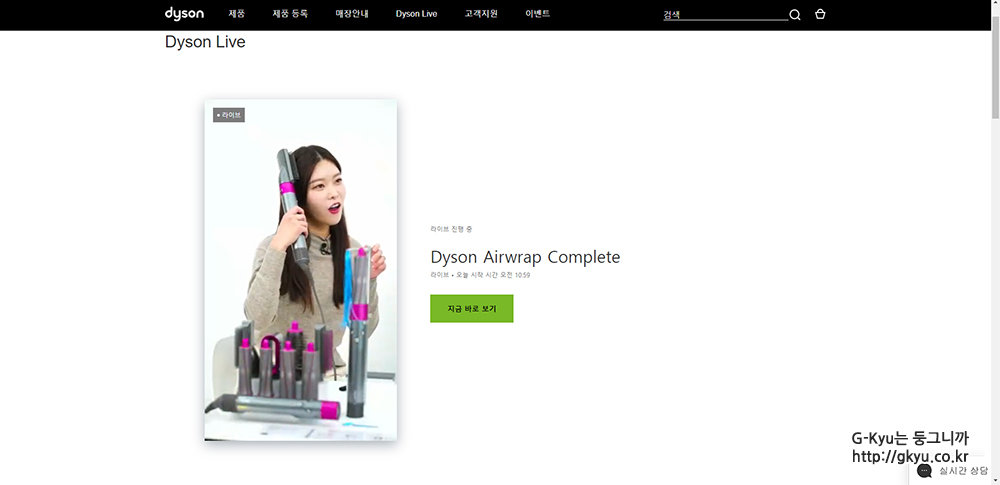 다이슨 공식 홈페이지에서 진행하는 다이슨 라이브 방송이다