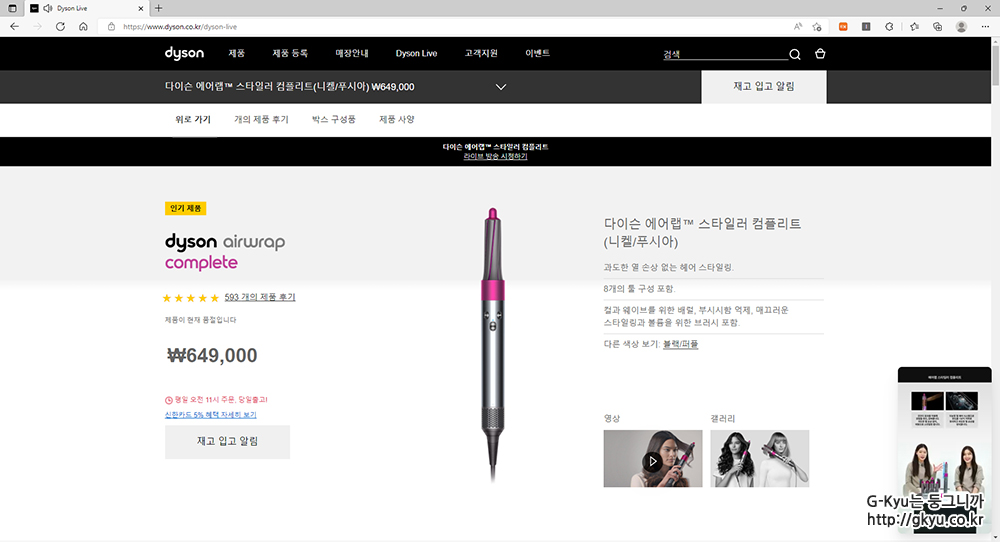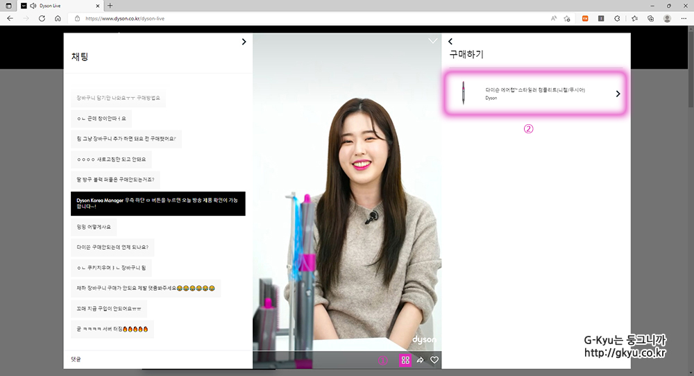 다이슨 공식 홈페이지에서 진행하는 다이슨 라이브 방송이다