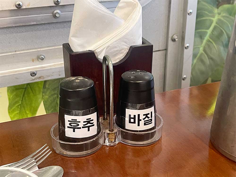 한편에는 물병과 후추, 바질이 각각 놓여 있었다.