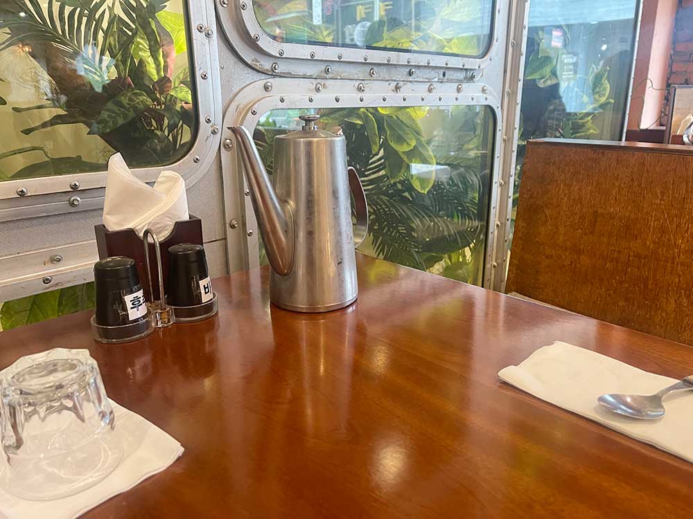 사진을 찍을 때는 사람들이 식사를 마치고 나간 터라 비어 보이지만 음식점 내부 테이블의 절반은 식사하는 사람들로 차있었다.
