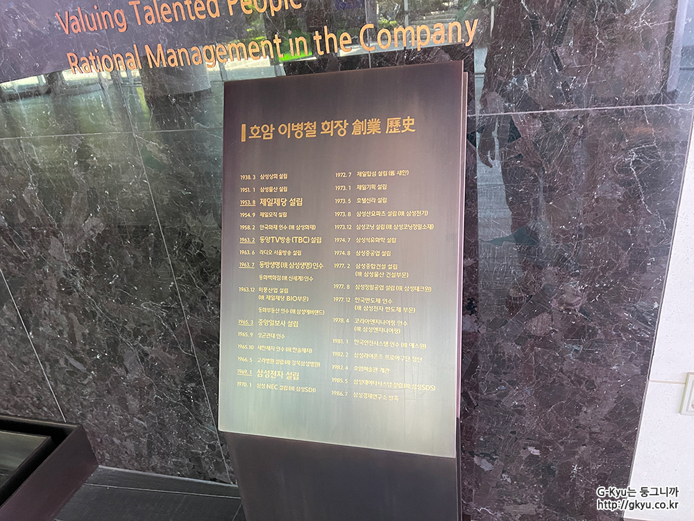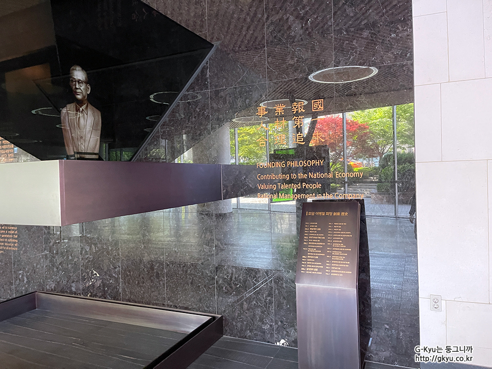 창업자인 이병철 회장의 흉상과 그 역사가