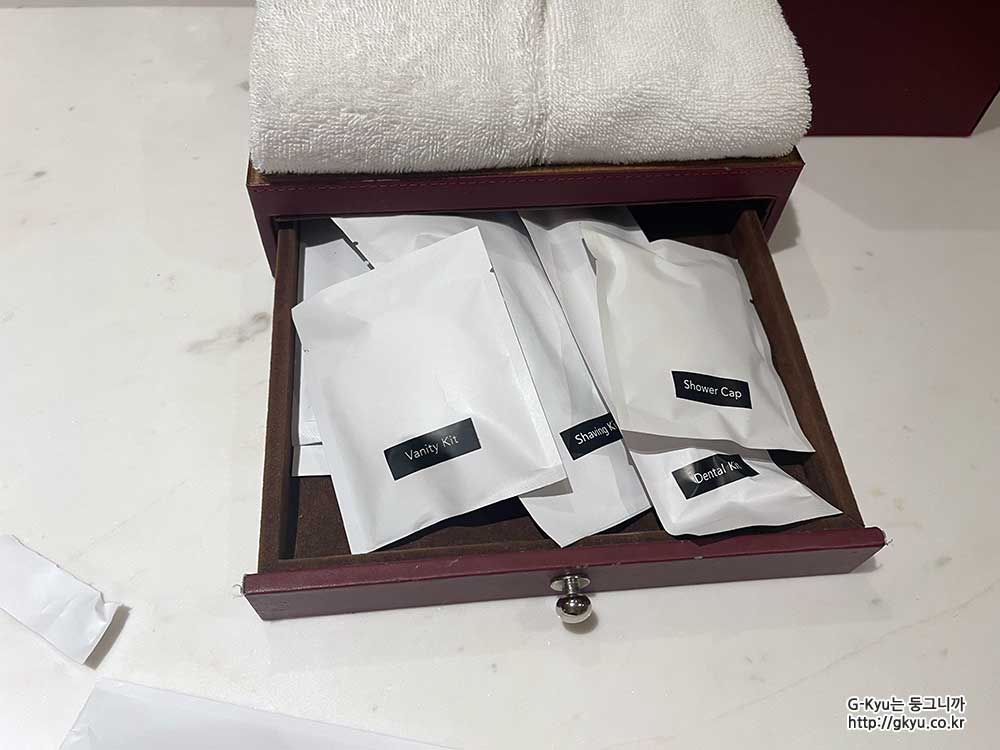 가운, 슬리퍼, 다리미, 금고, 드라이기 등 다양한 것들이 있었다