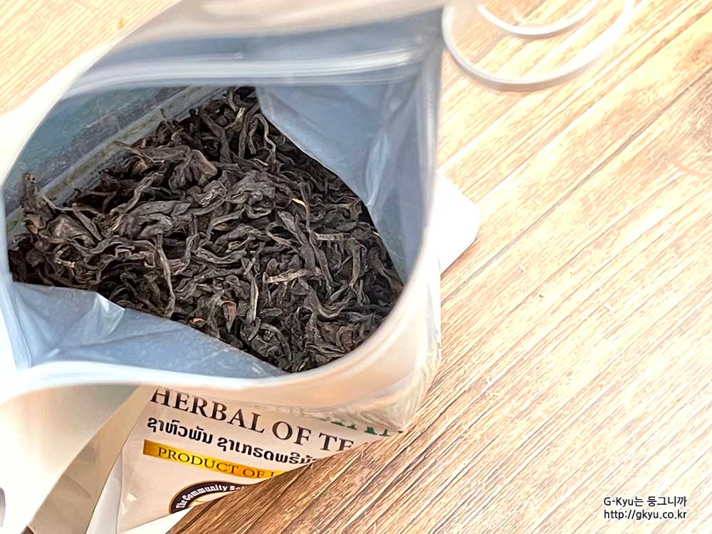 밀봉할 수 있도록 지퍼백처럼 입구가 되어 있으며, 포장지 뒤에 적힌 설명대로 차를 마시면 된다.
