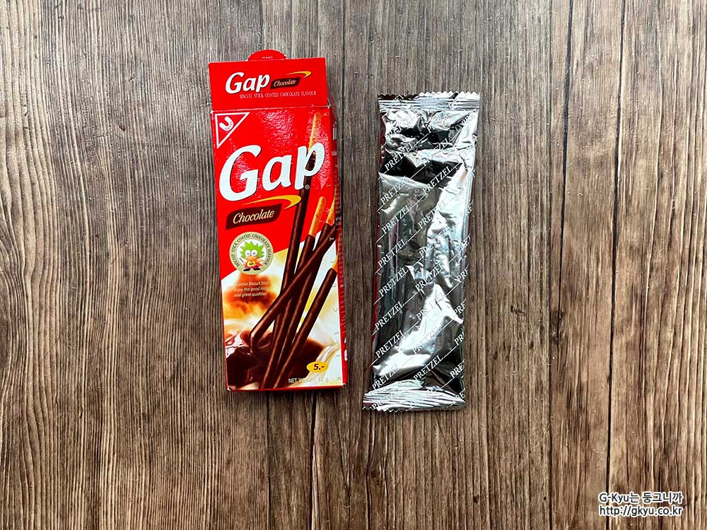 옷 브랜드만 있는 줄 알았는데 Gap이라고 쓰인 이 과자는 태국 회사에서 만든 과자다.