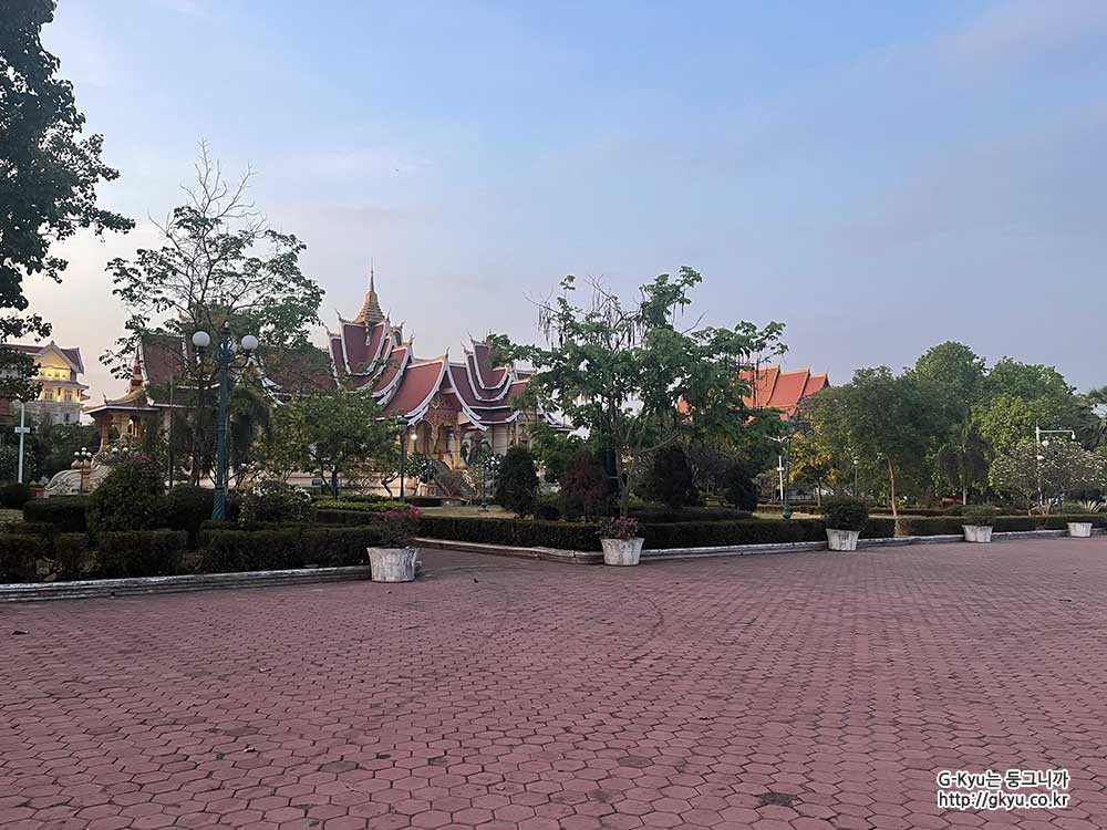 주변엔 탓 루앙의 첨탑처럼 보이는 구조물이 있다