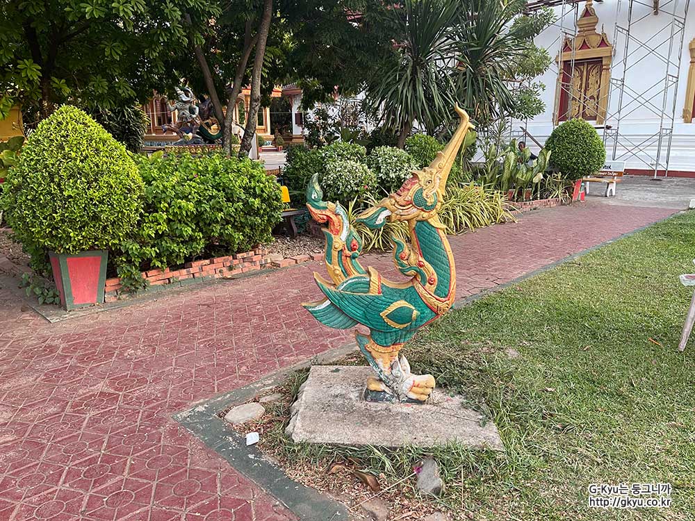 주변엔 탓 루앙의 첨탑처럼 보이는 구조물이 있다