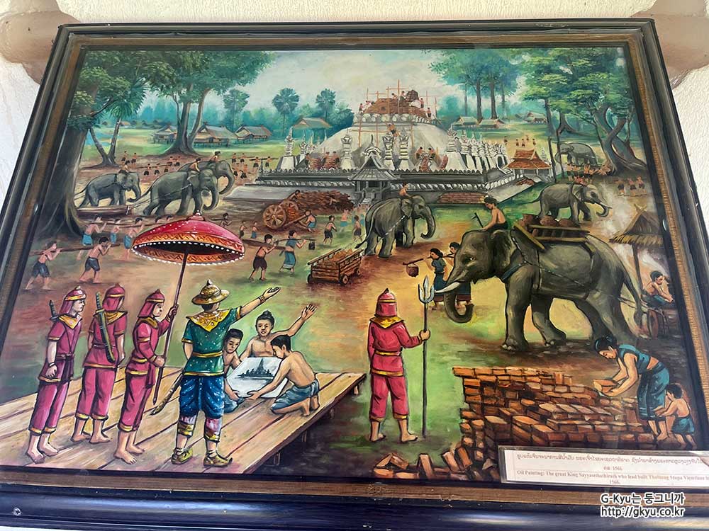 유화: 1566년에 탓 루앙 스투파 비엔티안을 이끄는 사야사티라트 왕 (번역 : 파파고)