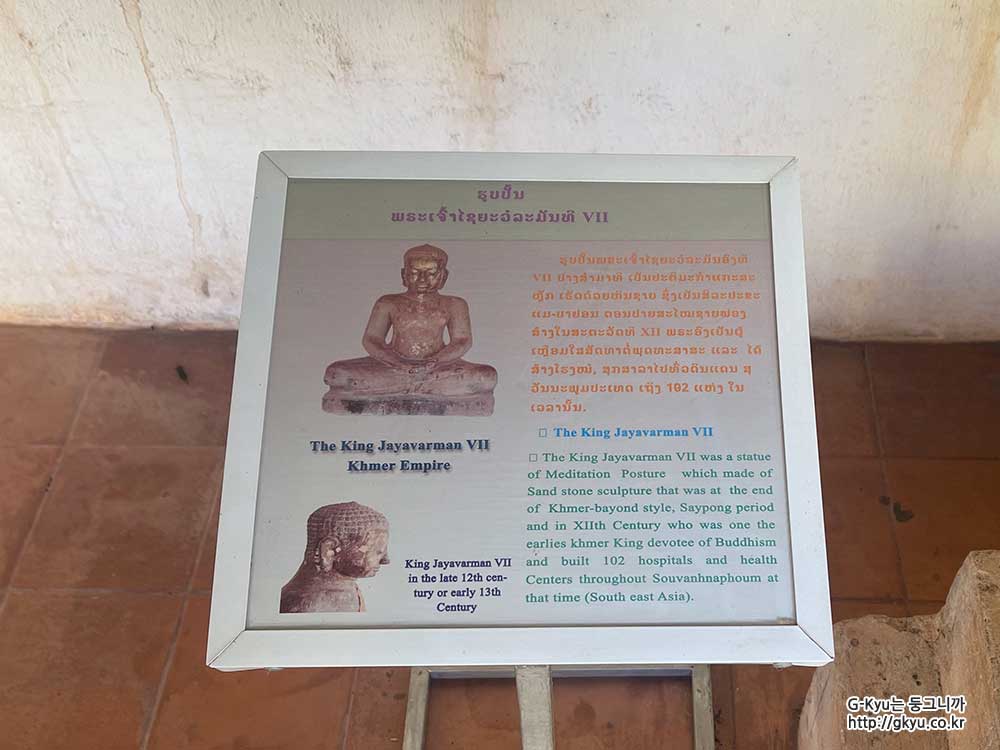 자야바르만 7세(Jayavarman Vii)는 크메르-바욘드 양식, 세이퐁 시대 말기, 12세기 초기 크메르 왕의 독실자 중 한 명으로 당시 수반나품 전역에 102개의 병원과 보건소를 건립한 사석 조각으로 만들어진 명상 자세의 동상입니다